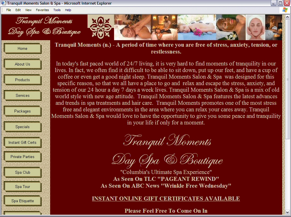 NEW - Tranquil Moments Day Spa (php, css, javascript, SEO, email forms, email marketing, logo design, branding)